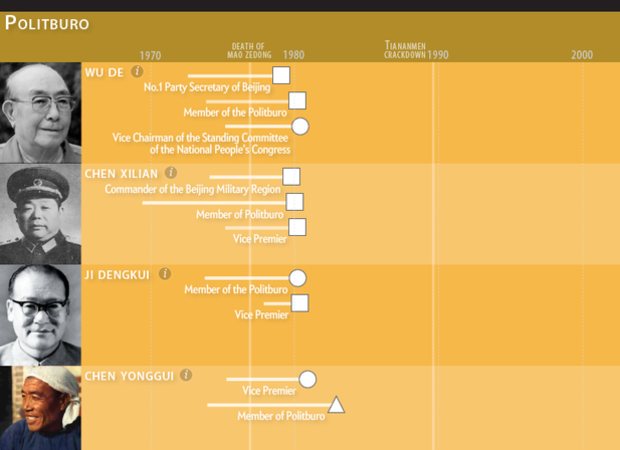 Over the past thirty-eight years, twelve of China’s top leaders have been purged. This infographic and the bios of these leaders explain how and why these mighty men fell. Download the high-resolution graphic.